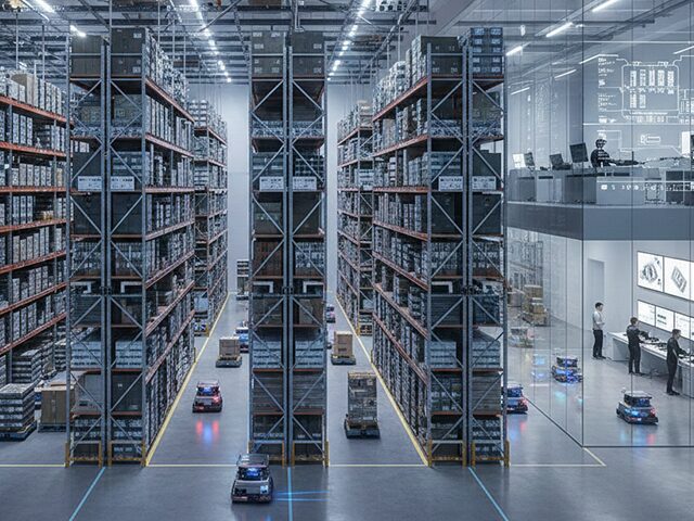 ピッキング棚が整然と整列した倉庫